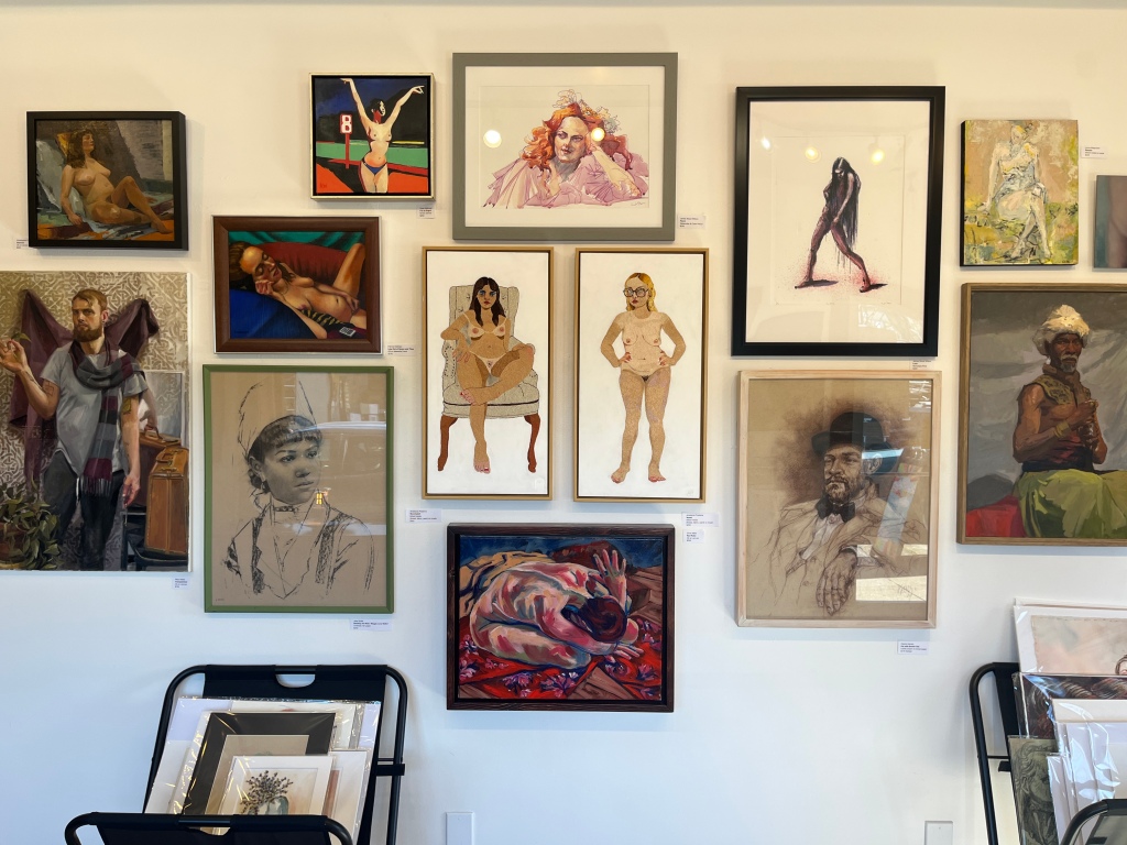 Hipbone Art Studio, which has provided life-drawing opportunities for over 35 years, is located just a short distance from the gallery. The camaraderie among artists was palpable on opening night—the space was so packed that there seemed to be more people standing on the floor than artwork hanging on the walls. For many, seeing their own work framed, juried, and illuminated in a commercial gallery—and sharing that moment with kindred spirits—was a deeply gratifying experience, bringing smiles all around.
