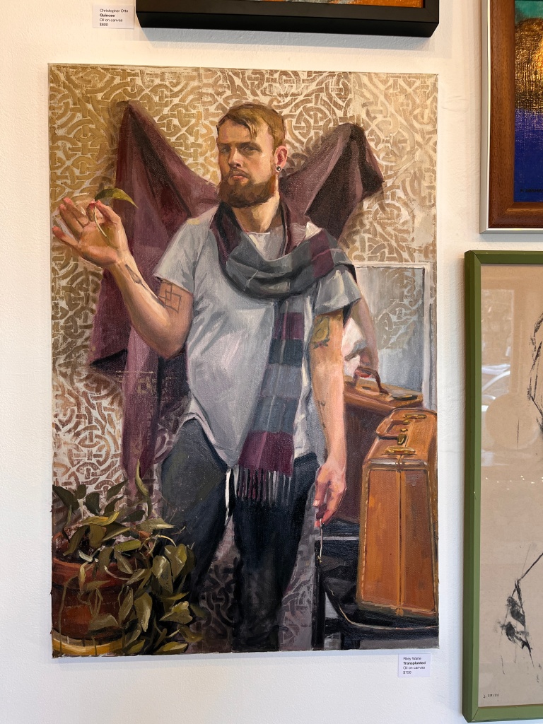 A preference for female models, or an unavailability of male ones is apparent in the works. But while many are drawn from life, some are purposeful and thought out, including Transplanted by Riley Waite. Others may even be drawn from historic images and include Maggie Lena Walker by Jake Smith. In any case, it’s good to see a variety of figurative work, often permanently confined to sketch pads, on display in a gallery.