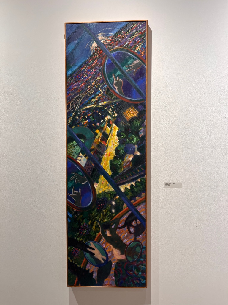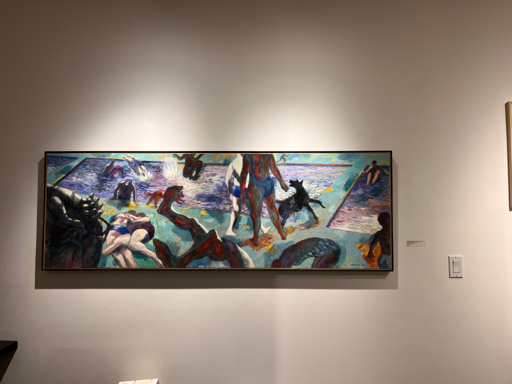 Adjusting to Johanson’s color palette takes time, especially after viewing Boraz’s more muted tonalities. Whether influenced by Fauvism or Postmodernism, Johansson orchestrates colors that reflect a heightened emotional experience rather than a literal one. In an early video interview, he once stated, “A color only exists with its relation to surroundings.” His son, Aaron Johanson, echoed this statement during the gallery talk, describing how Johanson would continuously refine colors until they harmonized perfectly.