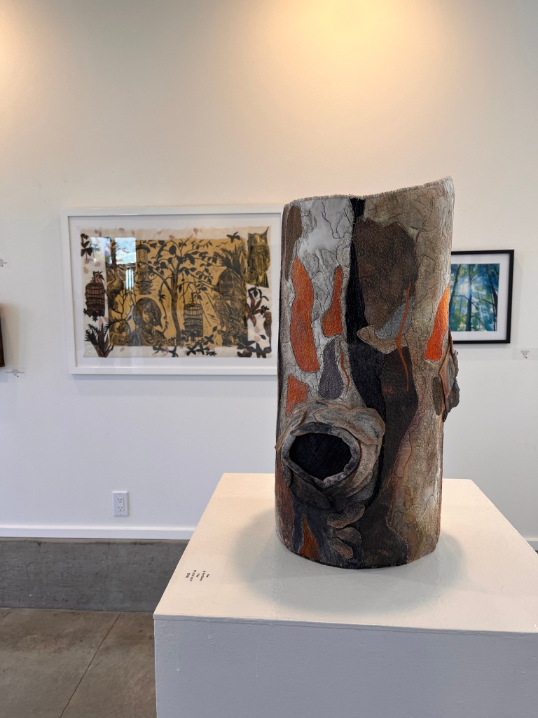 In the current show, Tree: Breadth of Humanity, at Verum Ultimum Gallery curator Jennifer Gillia Cutshall embraces variety in both medium and technique, featuring ceramics, glass, fabric, wood carving, and even conceptual pieces—all exploring the theme of trees.