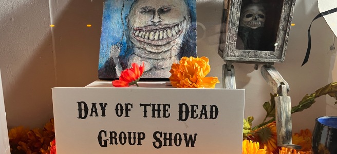 Make no bones about it, you don’t have to be from a Latin country to enjoy Dia de los Muertos or to participate in this group show. Wayne Jiang prepared several works in oil including the charming Impressionism Bones Visit the Museum. There’s also a variety of work in wood, ceramic, and more at a wide range of prices. This gallery does an excellent job of making every work available on its website for perusal and purchase. It’s on view until October 22 so there’s a little time left to bring your favorite work home and show it off for the November 1 holiday.