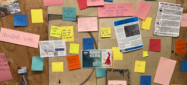 April showers bring May flowers unless you are in Portland, where rain showers accompany flowers in a forever spring. That pouring rain, however, did not dampen the enthusiasm in the First Thursday Art Openings in the Pearl District.