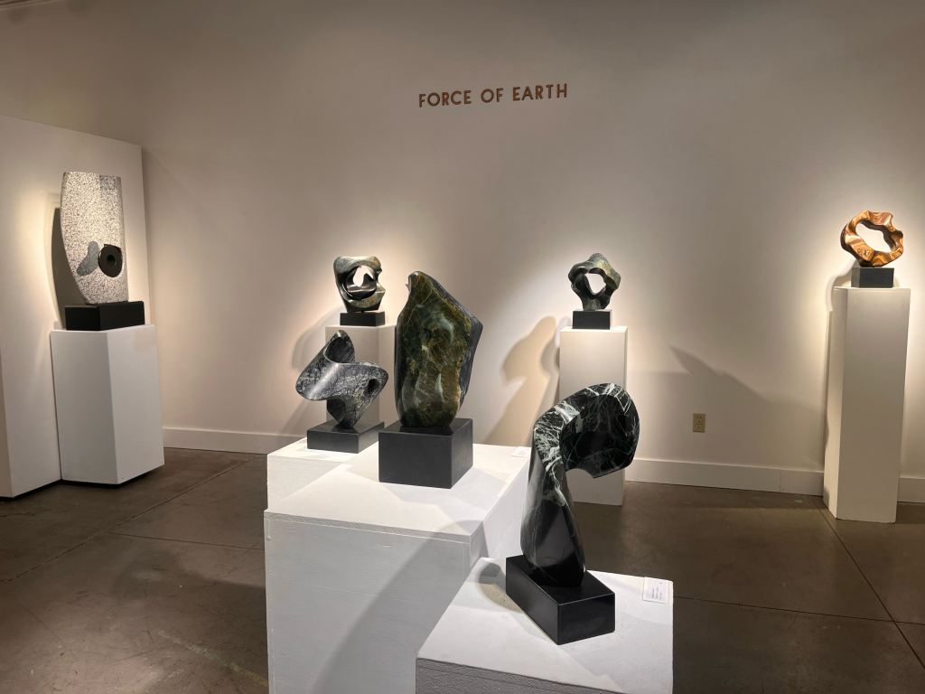 At Waterstone Gallery, David Haslett features his recent stone sculptural works, titled “Force of Earth.” That force happens slowly, but majestically, as evidenced in layers found in Arizona Onyx stone. “It’s said it takes a million years to form 12 inches of granite. So you have a few thousand years of history here,” said the artist.
