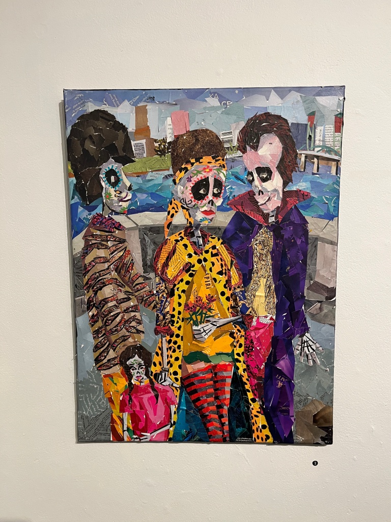 In the Pacific Northwest, far away from where I would expect to find much Latino art or culture, with some searching, it seems Rodriguez is a Portland staple. One of the paintings that came up on a search is a Dia de Los Muertos-themed work with a skeleton painting inside a Victorian-era home with Rose City-looking bridge outside the window.