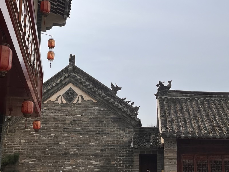 Hubu Mountain is outside of the South Gate of the ancient city Xuzhou, my hometown. Today it is part of the downtown core with 900,000 people. To call it a mountain is an overstatement. It is more like a hill, although you will break a sweat climbing up. Its commanding view has a perk – When the Yellow River was still a monster to tame during flooding seasons, the water would not reach the height. During the Ming Dynasty, this was a safe place for wealthy people to build big houses with magnificent courtyards. From afar, their tall exterior walls intersect with each other and cascade down the hill, forming a rich tapestry in deep blue, charcoal black, and here and there, a hint of red. On a quiet weekday, the neighborhood provides a great place to walk and soak in history and architecture.