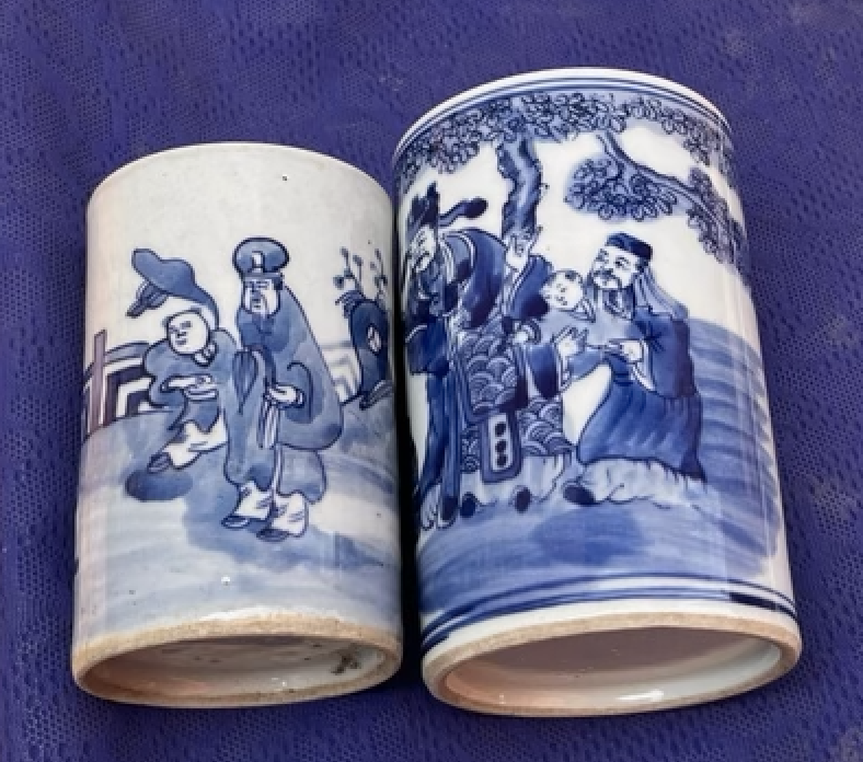 I found another two brush holders from the same vendor. Soon I began to realize he was quite educated in the business, with the type of vocabulary and confidence you would expect from an expert. “This is likely from the Kangxi period, a pinnacle period for blue and white porcelain. It is not from an official kiln. The stark contrast of the blue against white, and the exquisite depth from the lighter shade of blue to the darker one is truly unique in that period. The overglaze (Bao Jiang) is perfect and the condition is near perfect except for the normal wear. It is well worth RMB600!” That is about $85.