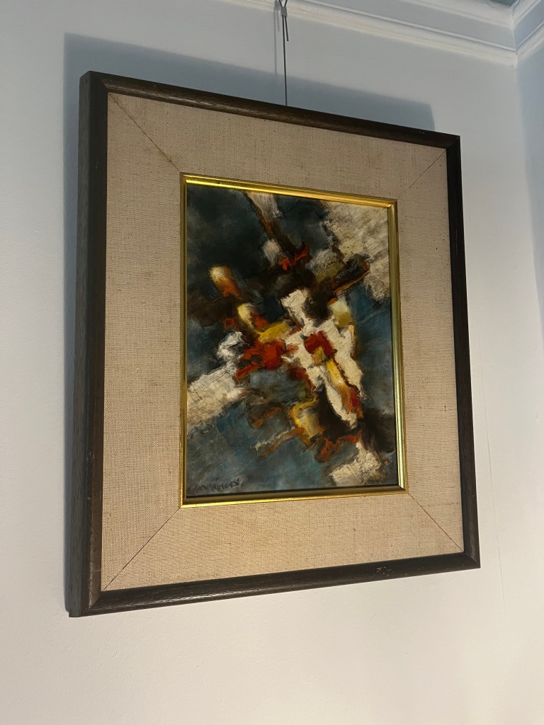Removed from the wall, the work revealed that it is not only signed but has the original label from Cascade Artists Co-op, founded in 1952 by the artist Ruth Dennis Grover.