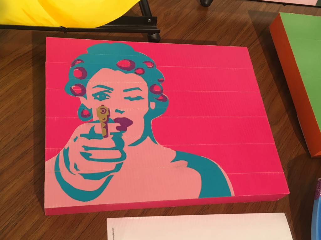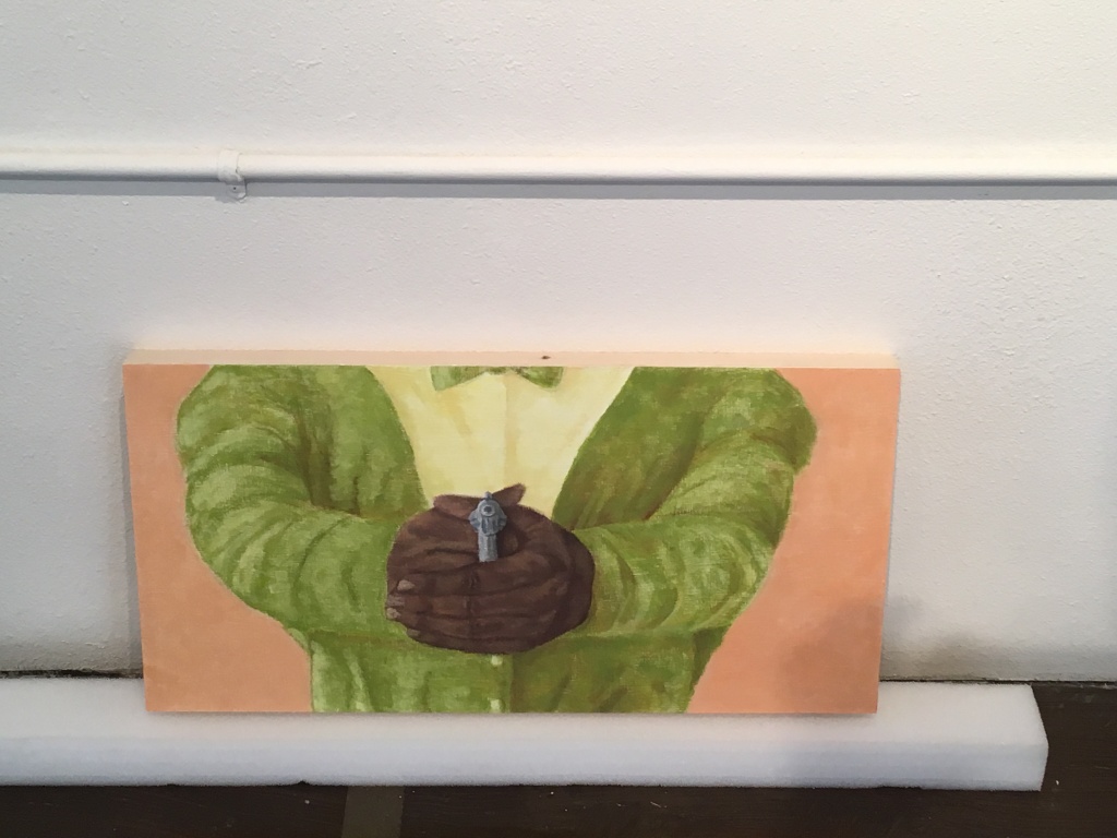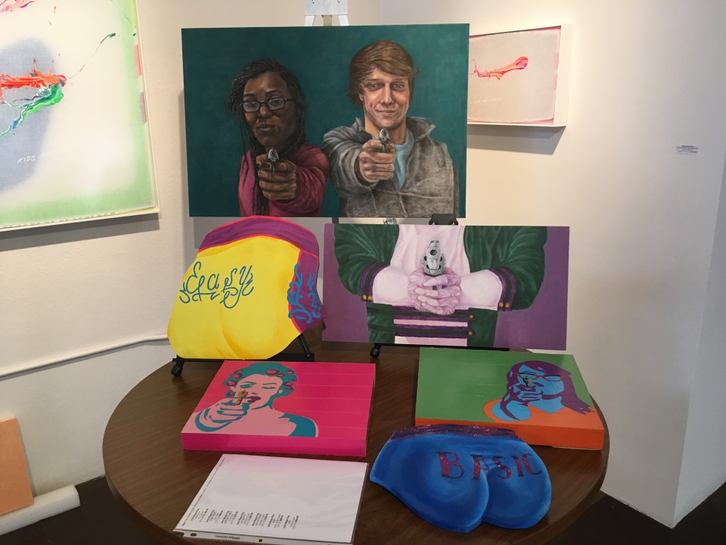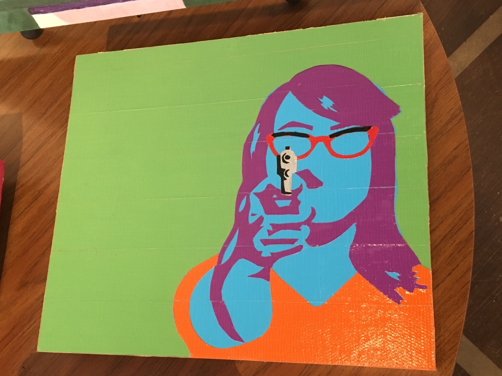 Megan Ping continues her exploration with unusual material (duct tape) on political or pop culture themes. A few paintings were lying on a table. I looked down and noticed a female figure holding a gun toward me. Sex, money, and gun violence have never left the American psyche, but what could still remain stirring, after Andy Warhol?